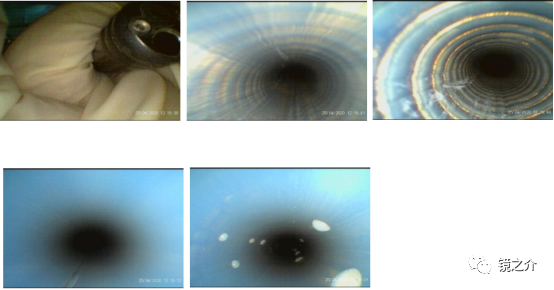 研究结果:水分可促进内镜中微生物生长和生物膜发育,在操作检测过程中检测管腔内部有残留的积液。还观察到严重缺陷,包括异物残留、连续划痕、丝状和片状纤维残留等。而内镜先端部则有污渍残留、喷嘴口胶粘剂退化、喷嘴口腐蚀老化变色、。常规目测无法满足实际监测需求和标准,借助先进的管道检测仪清晰的观察管道内部,填补监测盲区。
